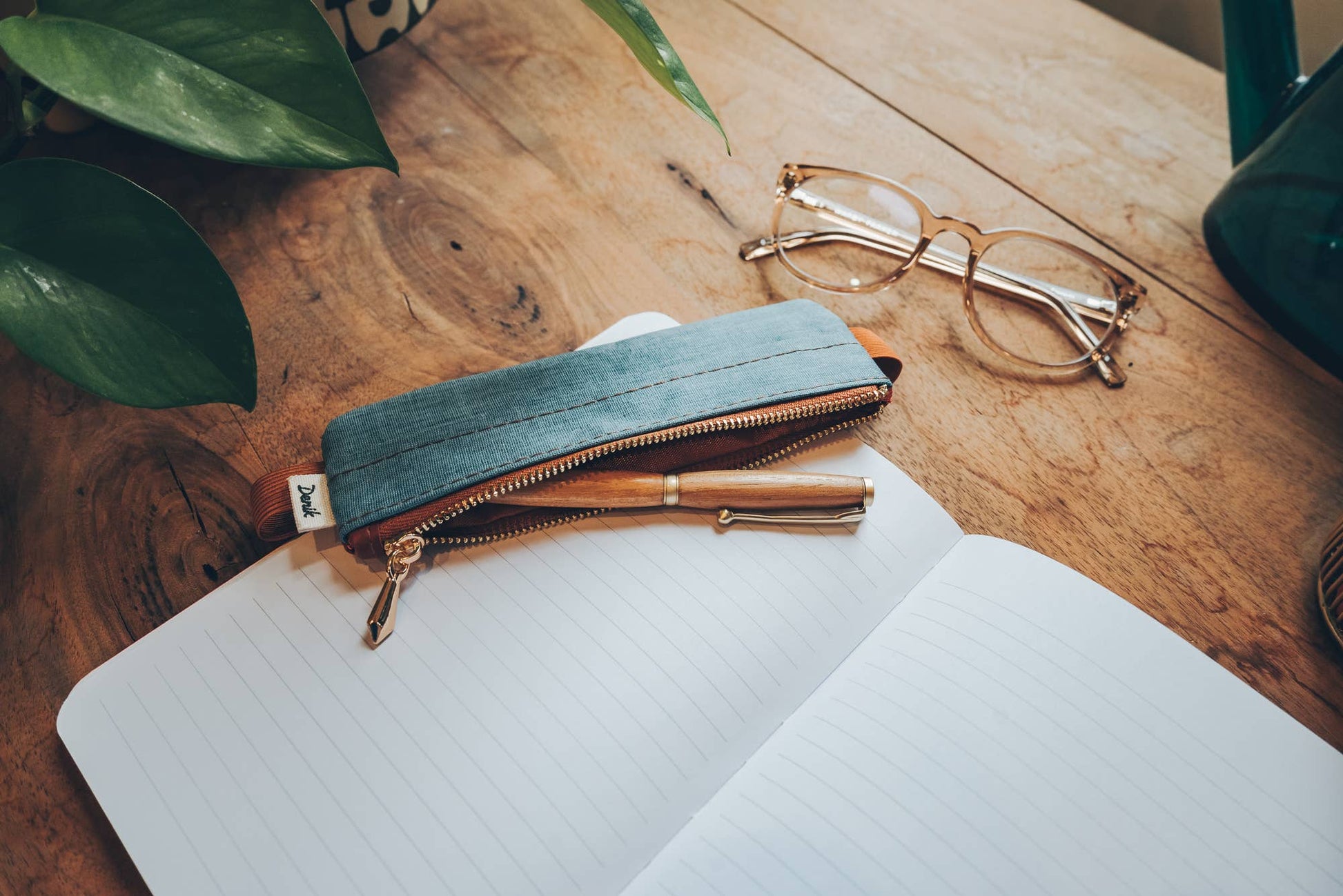 Keep your favorite notebooks and writing accessories together forever with our new notebook pouches. (Seriously, we're not sure why we didn't think of these sooner.) Embroidered design on soft faux suede, fully lined with an elastic band that fits around most notebooks.