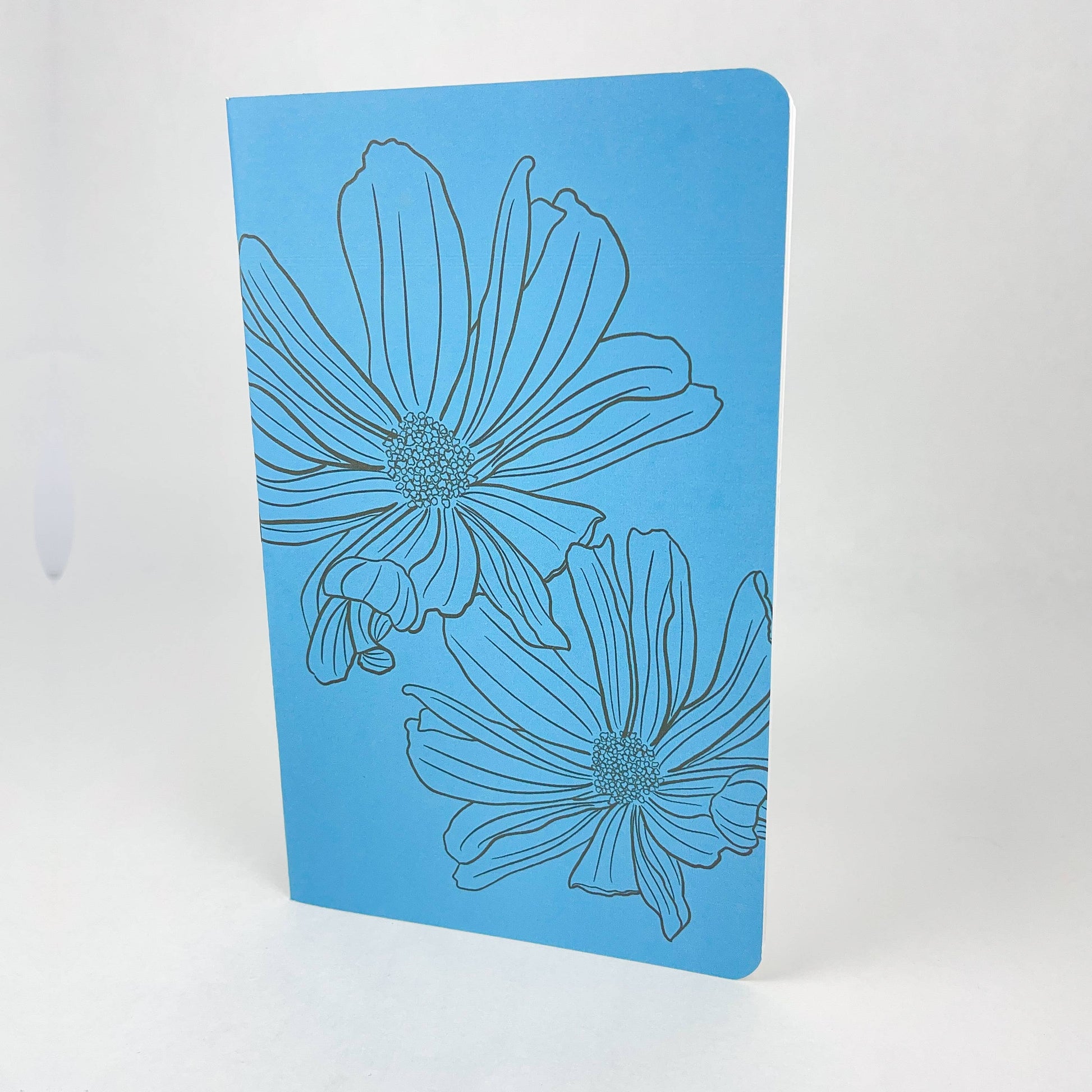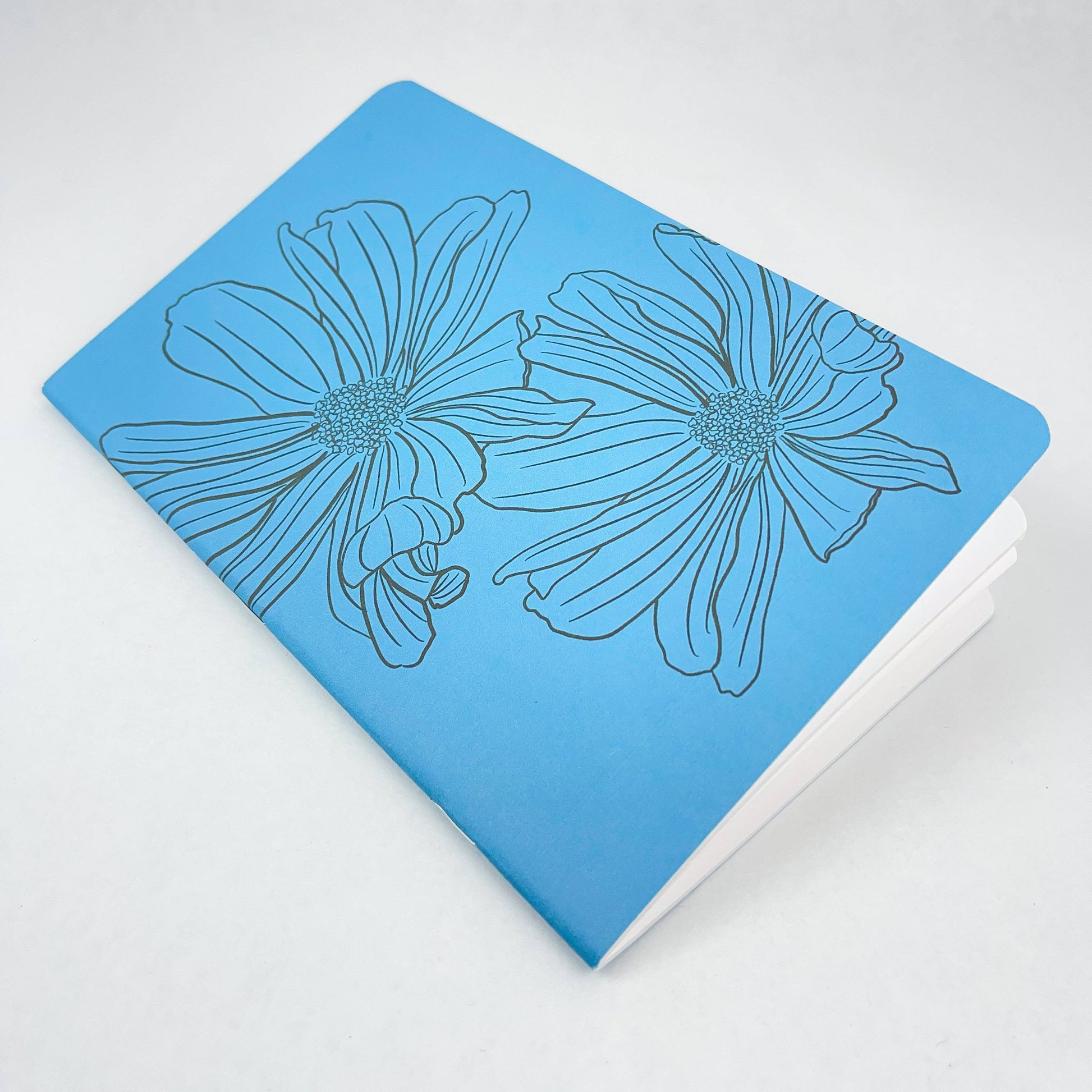 Inked Flowers - Style 1 - Blue - Handmade Saddle Bound A5